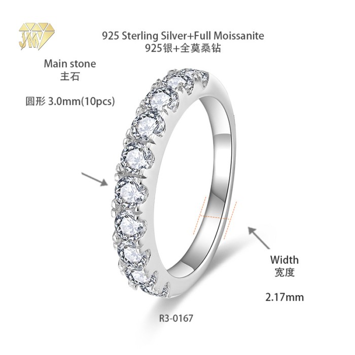 Hot Sale 1ct 925 Silver Moissanite Half Eternity Ring
