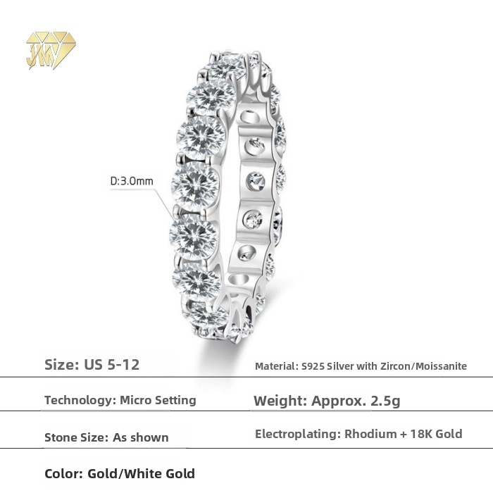 Full Eternity Ring Moissanite Band 3mm 925 Sterling Silver Rhodium 18K Gold