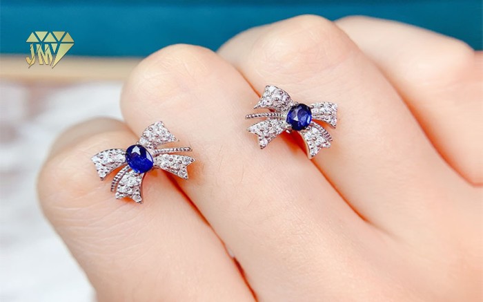 Delicate and timeless, these butterfly-shaped stud earrings feature natural sapphires set in 925 sterling silver with rhodium plating. A sparkling and elegant choice for women who love gemstone jewelry, offering the charm of natural sapphire studs with the brilliance often compared to natural diamond stud earrings.