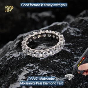 A1: A full eternity ring symbolizes everlasting love and commitment, as the gemstones encircle the band with no beginning and no end. Choosing a moissanite full eternity ring ensures both timeless beauty and affordability.