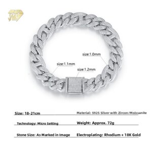 Iced Out Cuban Link Bracelet for Men Sterling Silver 925 Rhodium 18k Yellow Plated